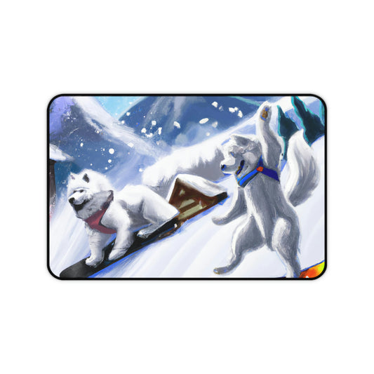 Samoyed Ski Resort Snowboarding Scene: Desk Mat