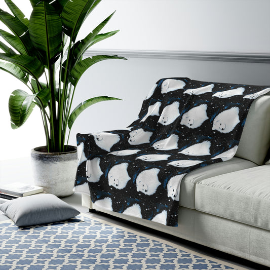 Samoyed Face in the Night Sky Velveteen Plush Blanket