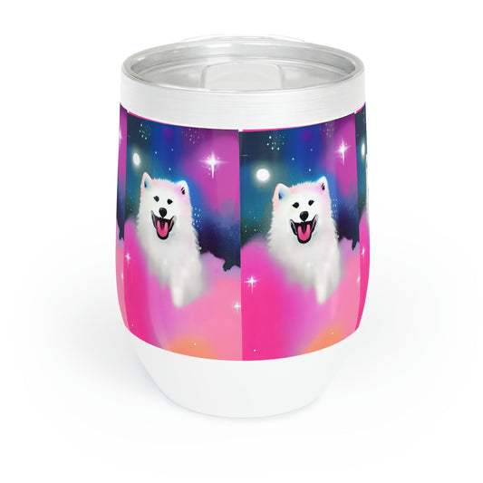 Cosmic Cartoon Samoyed Chill Wine Tumbler