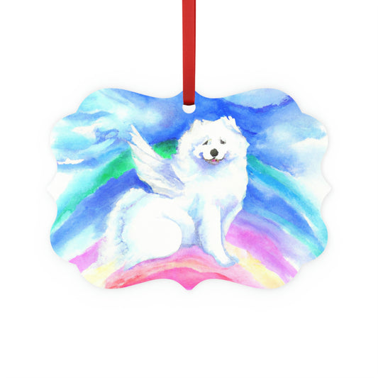 Angel Samoyed Rainbow Memorial: Metal Plaque Ornament