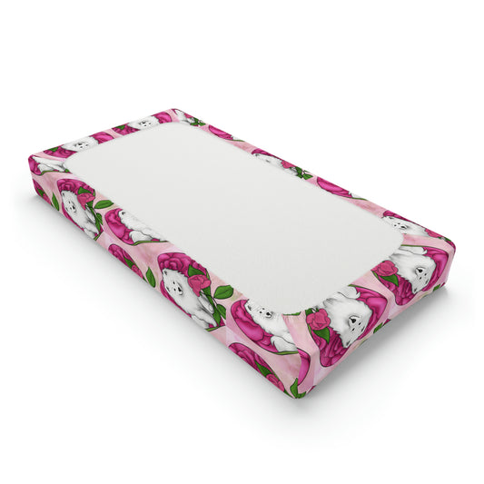 Love Pink Samoyed Rose Heart Baby Changing Pad Cover