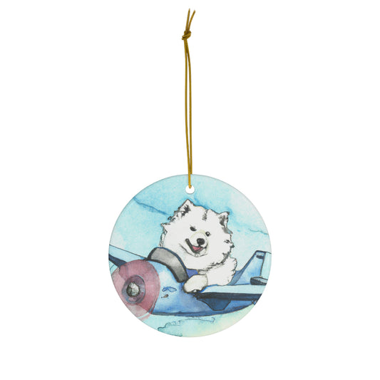 Airplane Pilot Samoyed Ceramic Ornament