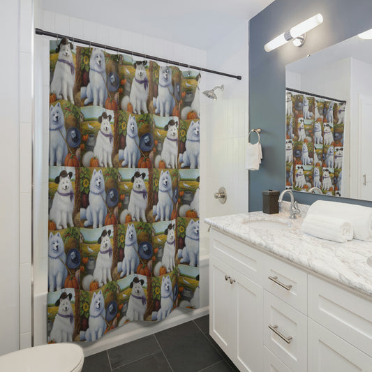 Fall Field Farmer Samoyeds: Shower Curtains