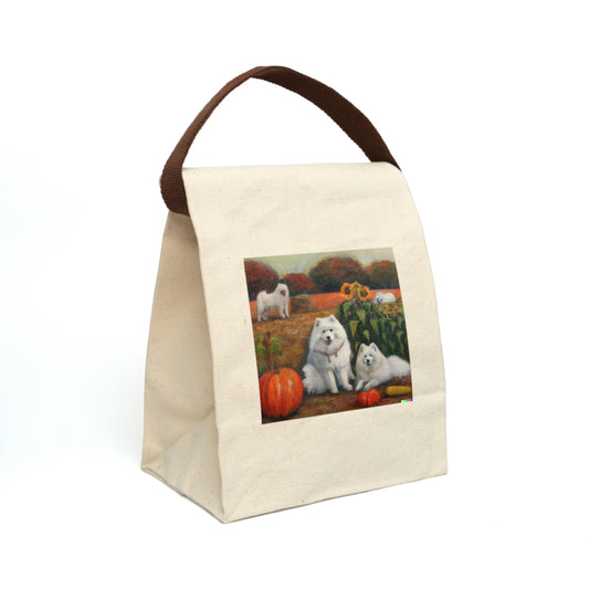 Fall Samoyed Harvest Canvas Lunch Bag With Strap