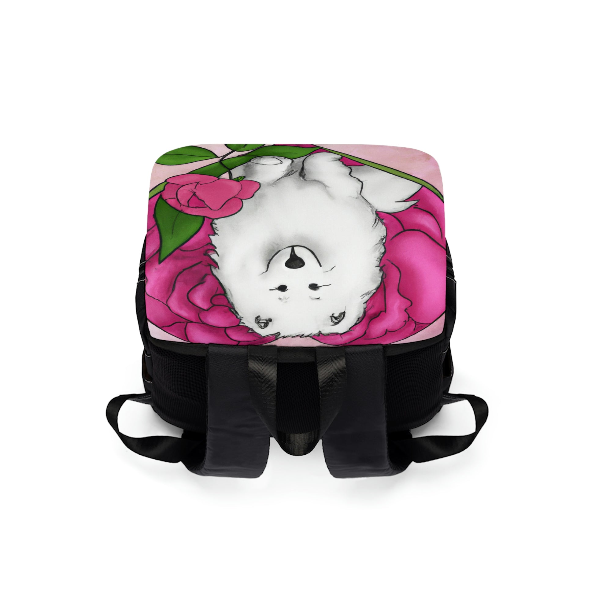 Small Samoyed Rose Heart: Unisex Casual Shoulder Backpack